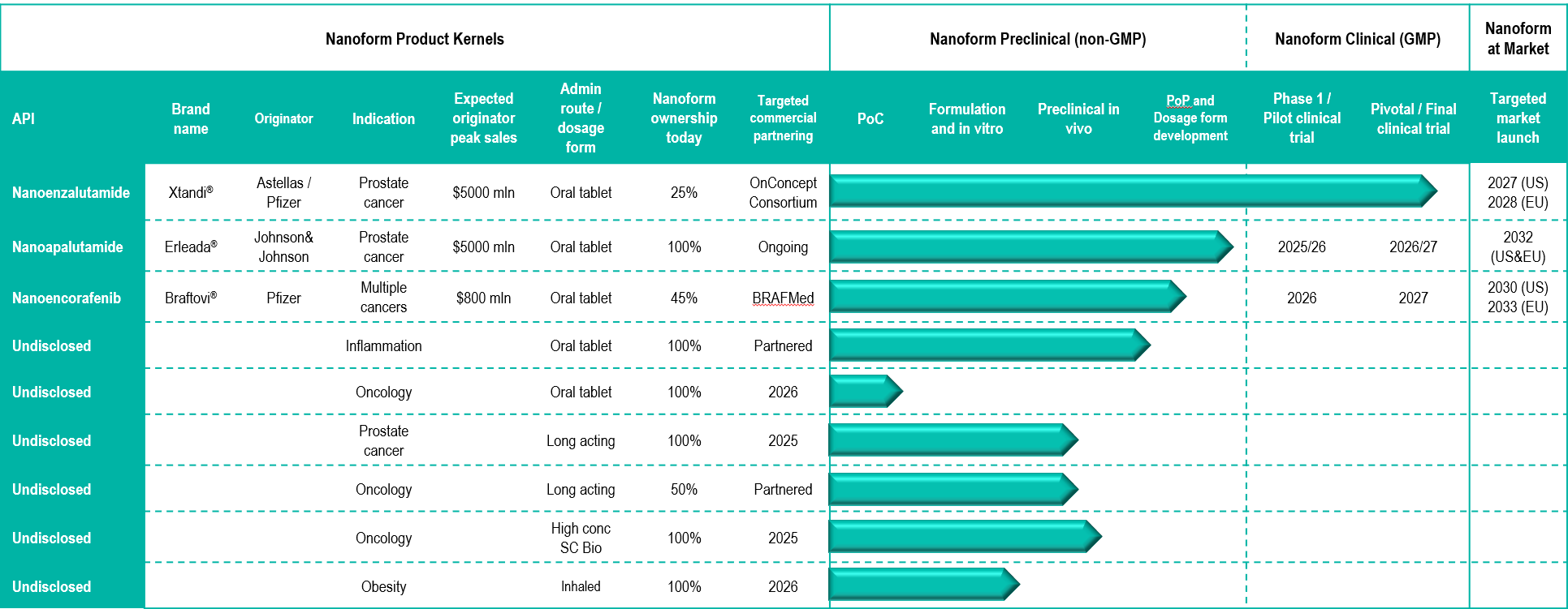 Our development portfolio also includes Nanoapalutamide and Nanoencorafenib, patient-centric versions of Johnson & Johnson’s ERLEADA® (apalutamide (prostate cancer)) and Pfizer’s BRAFTOVI ® (encorafenib (lung, skin and colorectal cancers)). These innovations are also designed to reduce tablet burden and improve regimen compliance. ERLEADA® sold $3.0B in 2024 and BRAFTOVI®/MEKTOVI® sold together totalled $607M.