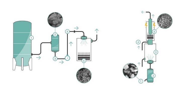 - The dry ice snow formation video plays. Pressure is further reduced during atomization, rapidly expanding CO2 freezes and dry ice is collected in which API nanoparticles are embedded. After the sublimation of dry ice, nanoformed API is obtained. SEM image of nanoformed API.