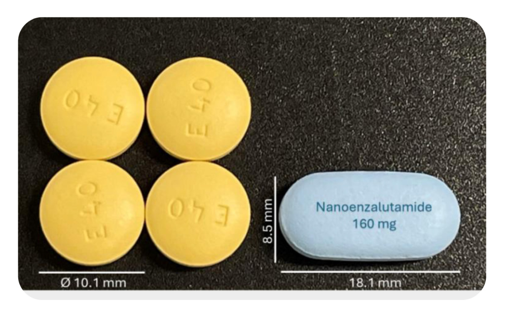 In small molecules, using Nanoform’s unique particles enable products with fewer, smaller tablets and an IP protection that restricts the ability of new entrants to manufacture an equivalent drug. Examples include Xtandi® (enzalutamide), where Nanoform technology has enabled a single tablet for delivery of an equivalent daily dosage and Erleada® (apalutamide), where nanoengineered particles have enabled a significant reduction in tablet size.
